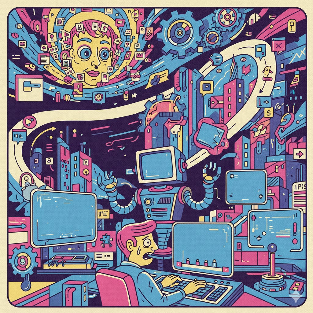 But you still have to pay attention to the output. So you wind up saturating yourself - you will have as many things going on as you can pay attention to. Which means your co-workers will, too. This makes it hard to collaborate - everyone is busy all the time. I wrote about this last week, and I can say - it’s only getting worse! It’s very much the case that, as I get better at using the tools, and build new tools to build my own leverage, I just do more work, not less!