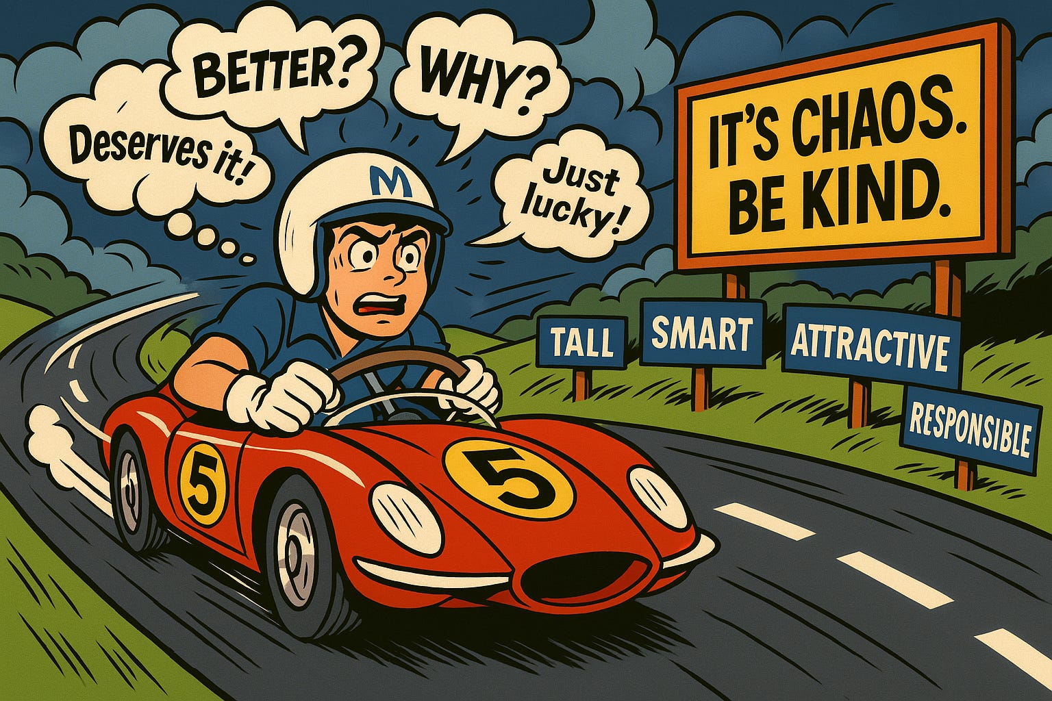 When you put these two things together, you get the engine that powers much of our unhappiness: we want to tell a story of “better vs worse” almost everywhere, and we want to know why. We struggle with both parts of that: we don’t agree on what better is, and we don’t agree on what it means even when we do agree on that. The result is that we tend to use arbitrary properties to tell stories about each other that assign moral values, often to properties beyond our control.